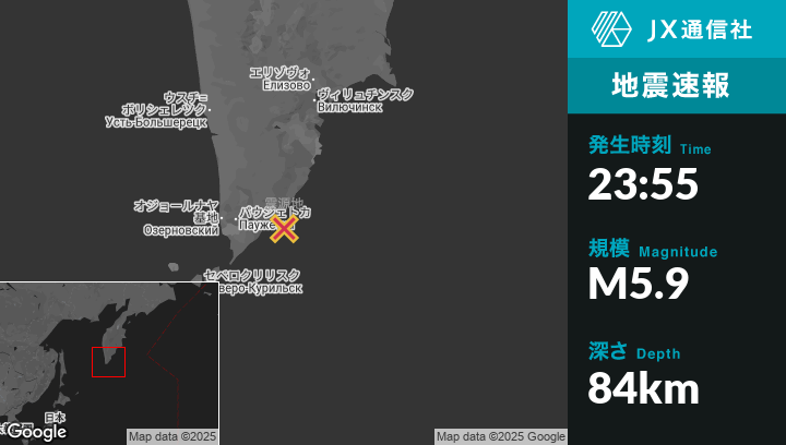 | 震源地 | ロシアのOzernovskiyから東90kmの地点 |