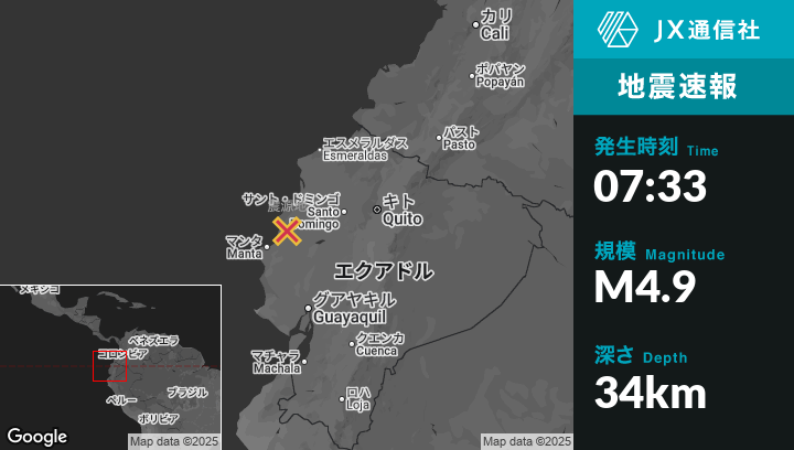 | 震源地 | エクアドルのBahía de Caráquezから東北東15kmの地点 |