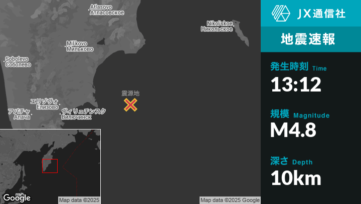 | 震源地 | ロシアのPetropavlovsk-Kamchatskyから東191kmの地点 |