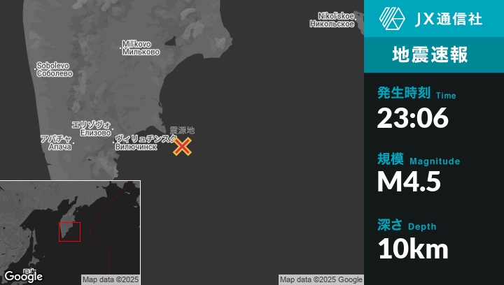 | 震源地 | ロシアのPetropavlovsk-Kamchatskyから東129kmの地点 |