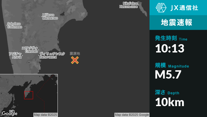 | 震源地 | ロシアのPetropavlovsk-Kamchatskyから東171kmの地点 |