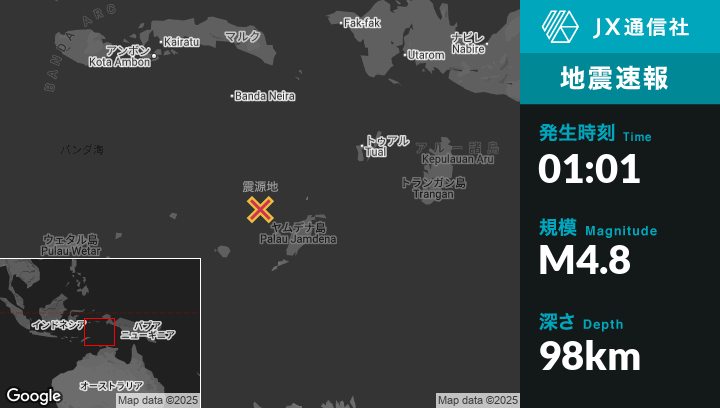 | 震源地 | インドネシアのTualから西南西284kmの地点 |