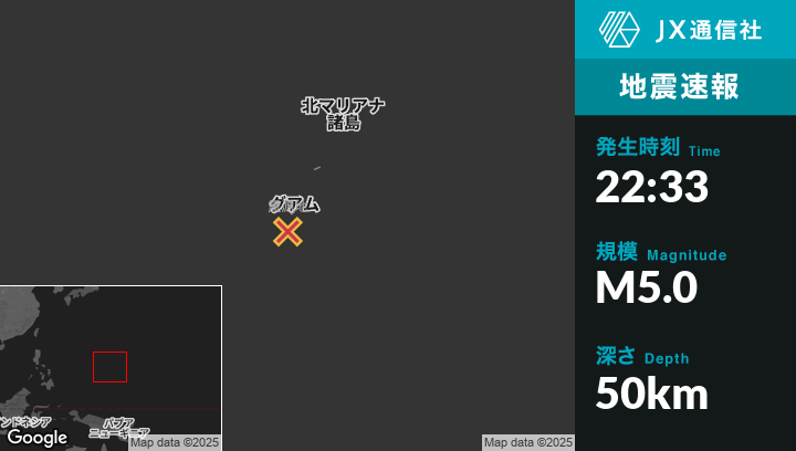 | 震源地 | グアムのMerizo Villageから南24kmの地点 |