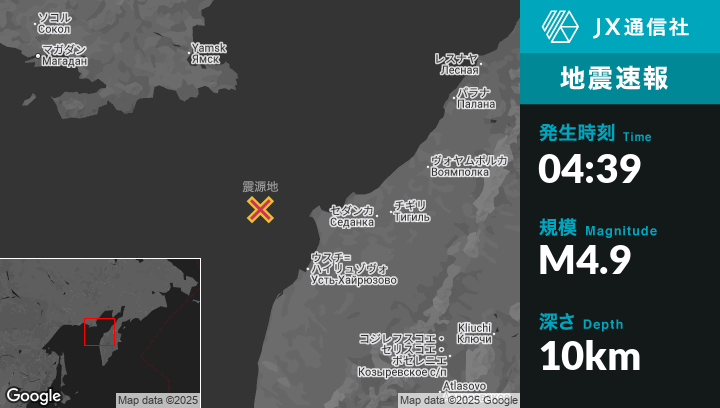 | 震源地 | ロシアのTigil’から西177kmの地点 |
