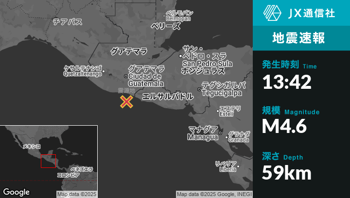| 震源地 | グアテマラのIztapaから南東41kmの地点 |