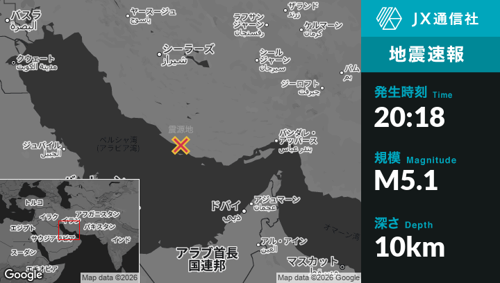 1月23日 20:18頃、イランのMohrから南東56kmの地点でM5.1の地震がありました。