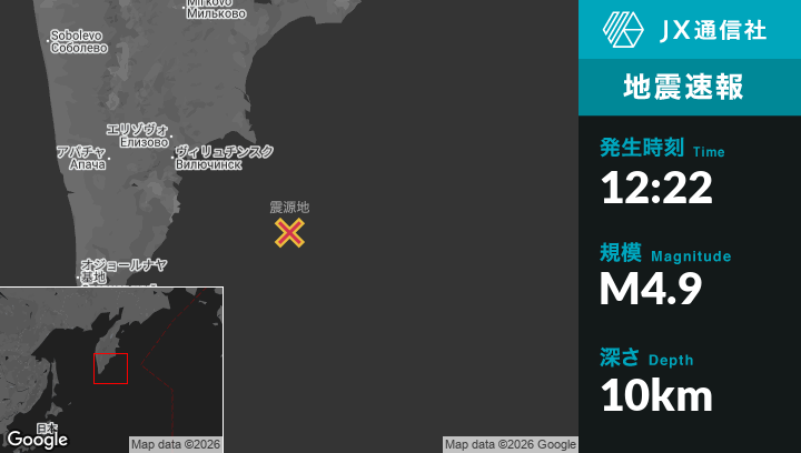 | 震源地 | ロシアのPetropavlovsk-Kamchatskyから南東176kmの地点 |