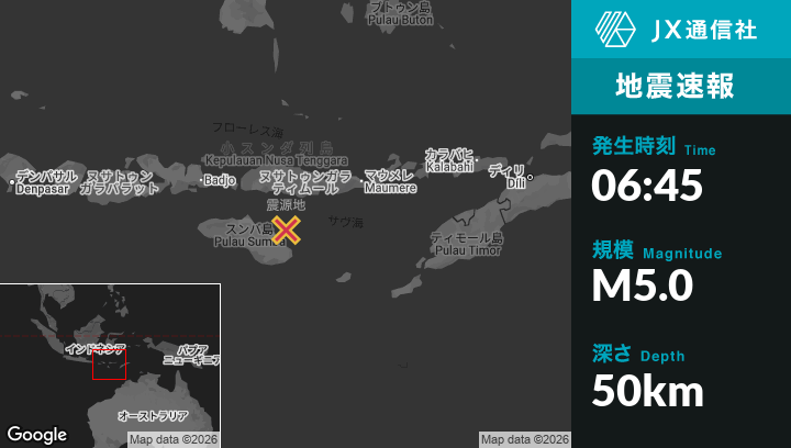 | 震源地 | インドネシアのWaingapuから東北東51kmの地点 |