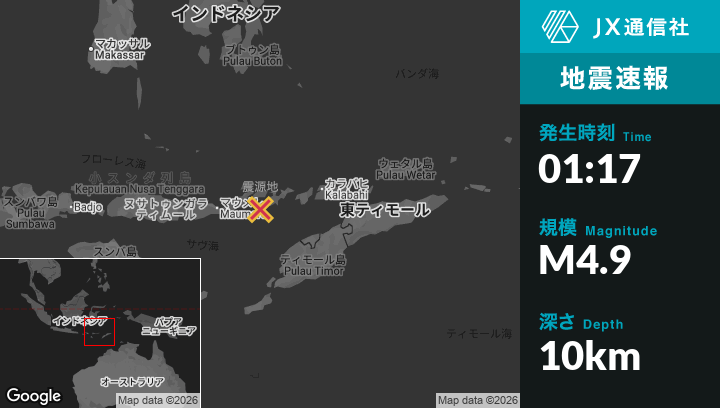 | 震源地 | インドネシアのMaumereから東105kmの地点 |