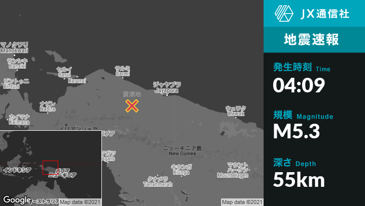 | 震源地 | インドネシアのAbepuraから西南西168kmの地点 |