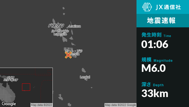 | 震源地 | バヌアツのPort-Vilaから西北西55kmの地点 |
