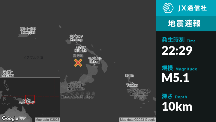 | 震源地 | パプアニューギニアのRabaulから西北西139kmの地点 |