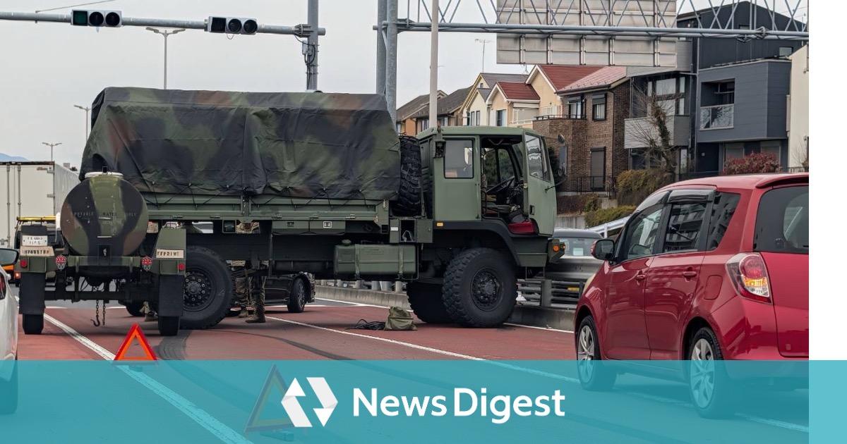 13日午前、東京都町田市の国道16号で米軍の輸送車が2車線を塞ぐ事故があった。