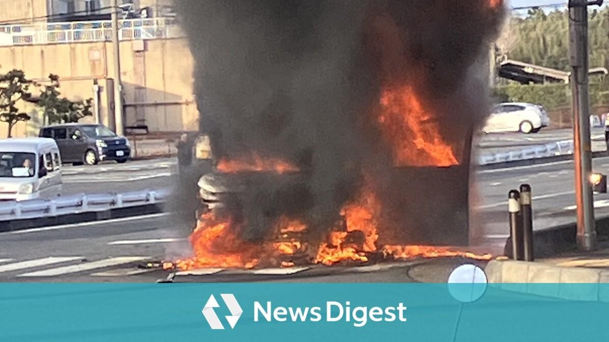 消防によると、16時55分現在、消火活動を行っている。SNS上の投稿からは、車から炎が上がっている様子が確認できる。(JX通信社/FASTALERT)