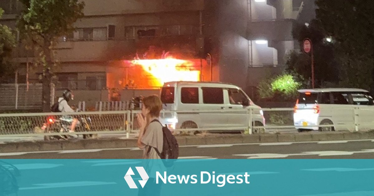 NewsDigestユーザーの投稿からは、炎が上がっている様子が確認できる。(JX通信社/FASTALERT)