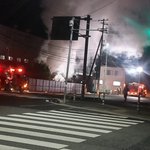 SNS上の投稿からは、炎が上がっている様子が確認できる。(JX通信社/FASTALERT)