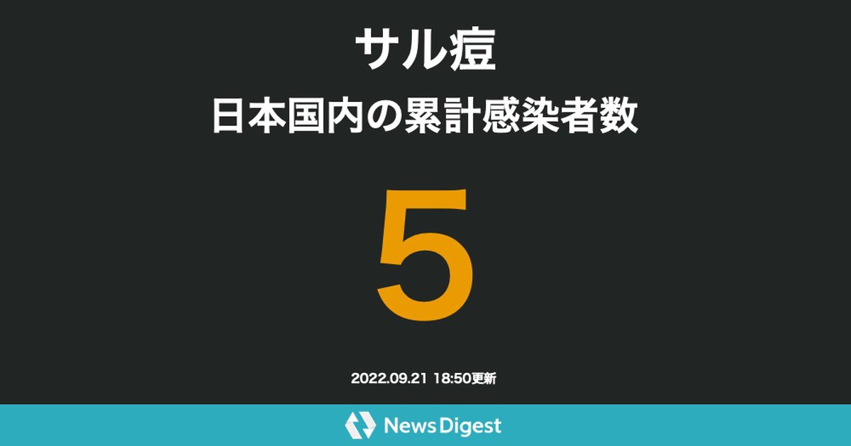 サル痘 新たに東京都の60代男性感染確認 国内5例目2022年9月21日18:53東京都は21日、新たに60代男性がサル痘に感染したと発表した。男性に海外渡航歴はないが、海外から来日した人と接触歴があるという。これで国内の累計感染者数は5人になった。(JX通信社/FASTALERT)