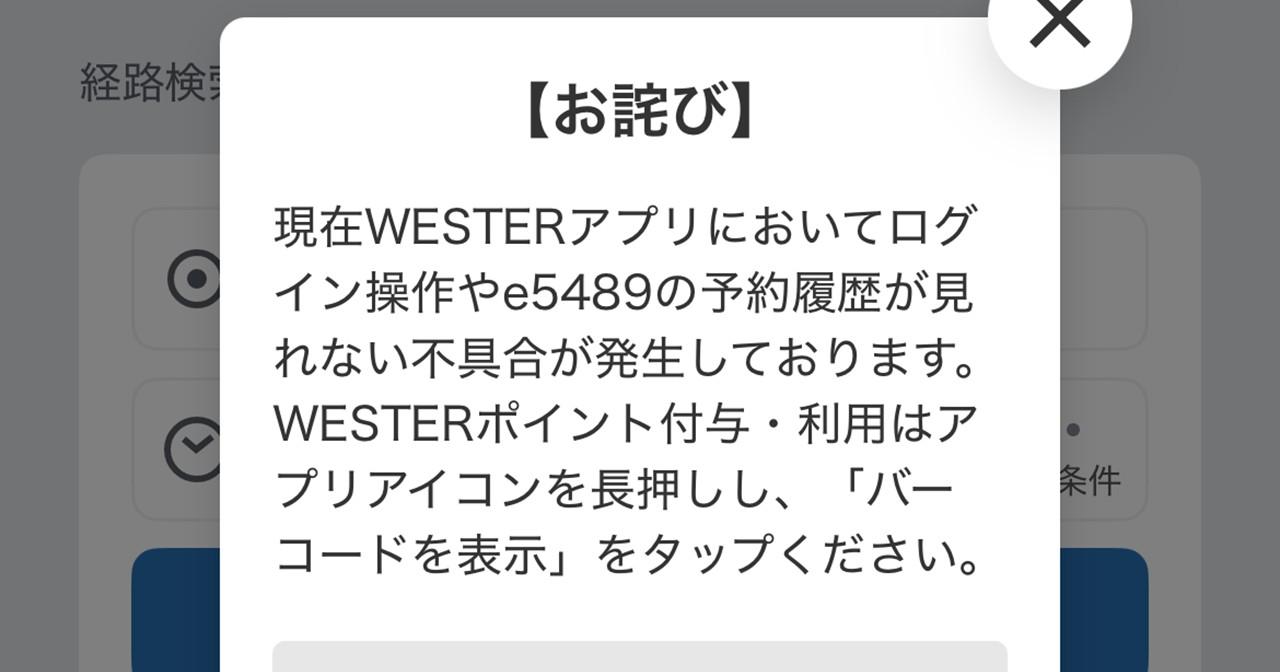 WESTERでシステム障害 「モバイルICOCAにログインできない」
