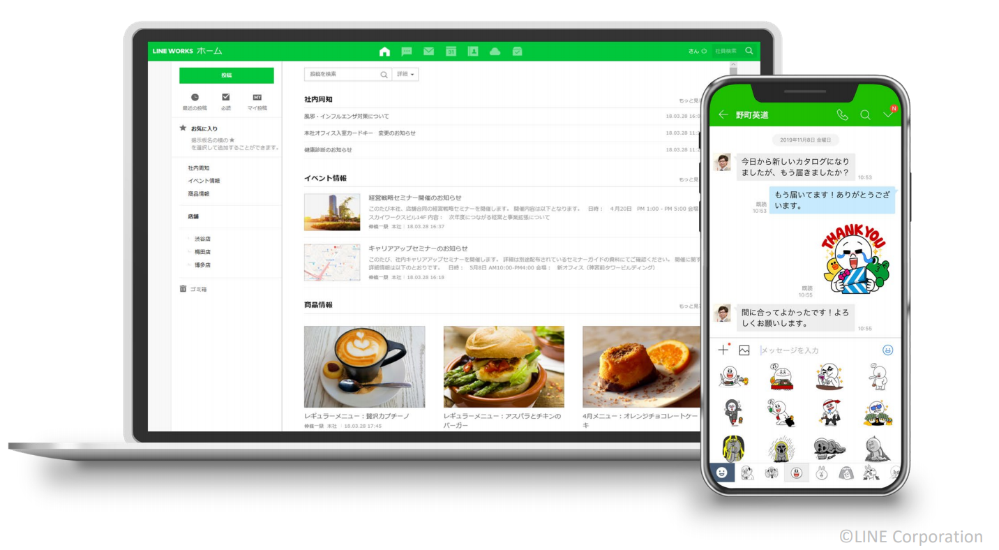 「LINE WORKS」は、内勤・外勤、現場・本社、事業所間など、離れた仕事のコミュニケーションに人気のビジネスチャットサービス。クラウドサービスとしてスマートフォンでもPCでも利用できることから、新型コロナウイルスの影響で少ない準備期間でテレワーク環境を整備したいというニーズに対しても、積極的に支援をするという。