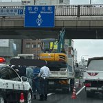 こりゃ~アカン! 名阪国道西向き五ケ谷インターサイドでレジャー巻き込みのトレーラー横転! 荷物散乱本線通行止です! https://t.co/l6iNjxChp6