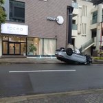 柏駅近くで黒ナンバー横転してる。救命隊員は必死に中の人を呼びかけてる。無事であることを祈る。あと知り合いで無いことを祈る。 https://t.co/pWAOgzdBP9