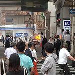 西中島南方駅前にタクシーが突っ込み炎上 大阪市淀川区