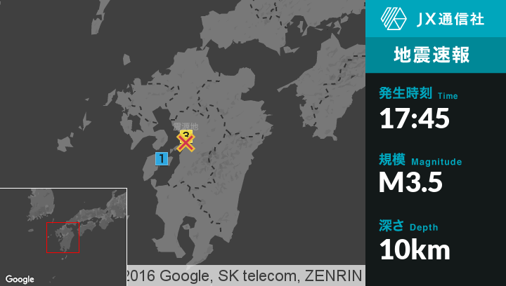 | 震度2 | 熊本西区, 熊本南区, 熊本美里町, 嘉島町 |