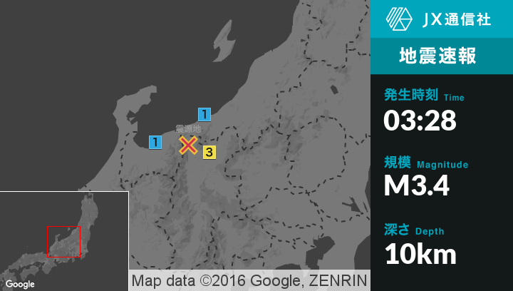 | 最大震度 | 震度3 |