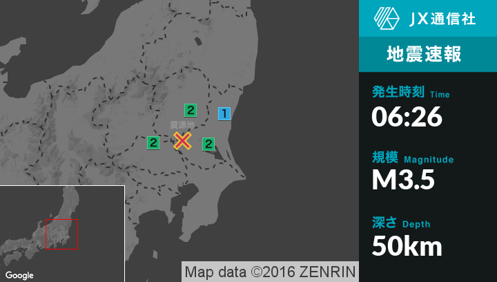 | 震度2 | 土浦市, 筑西市, 坂東市, 下野市, 加須市, 久喜市 |