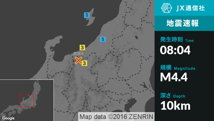 | 震度3 | 上越市, 小谷村 |