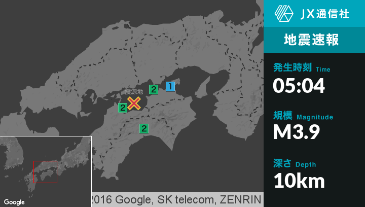 震源地瀬戸内海中部