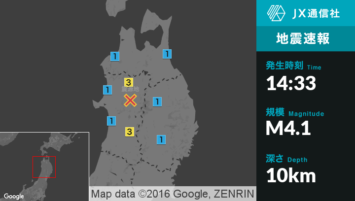| 震源地 | 秋田県内陸北部 |