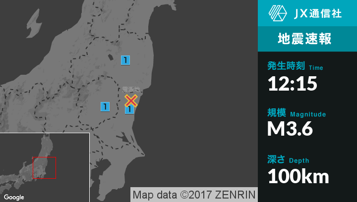 | 震度1 | 白河市, 浅川町, 笠間市, 宇都宮市, 栃木那珂川町 |