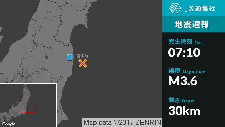 | 震度1 | 福島広野町, 楢葉町, 川内村, 大熊町, 双葉町, 浪江町 |