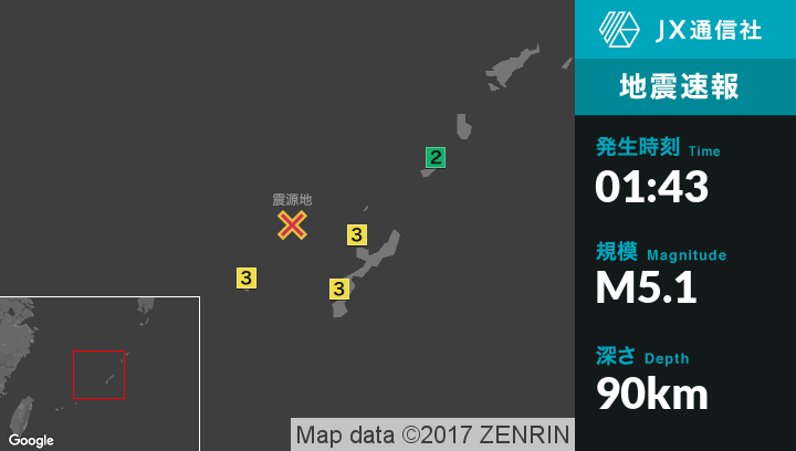 | 発生時刻 | 2017年3月25日 1時43分頃 |