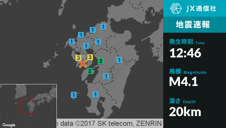 | 震度3 | 長崎市, 諫早市, 南島原市 |