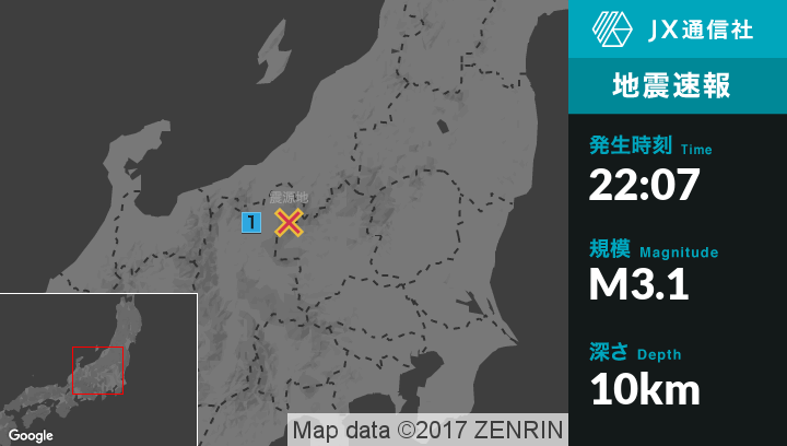 | 震度1 | 長野市, 須坂市, 中野市, 飯山市, 長野高山村, 山ノ内町, 飯綱町 |