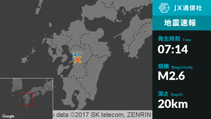 | 震度1 | 熊本西区, 熊本美里町, 嘉島町, 益城町, 甲佐町, 山都町 |