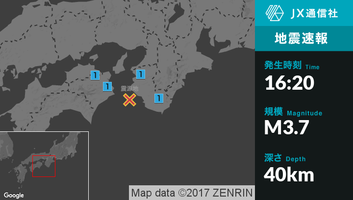 | 震度1 | 御坊市, 紀美野町, 湯浅町, 日高川町, 田辺市, 白浜町, 徳島市, 鳴門市, 小松島市, 石井町, 阿南市, 美波町 |
