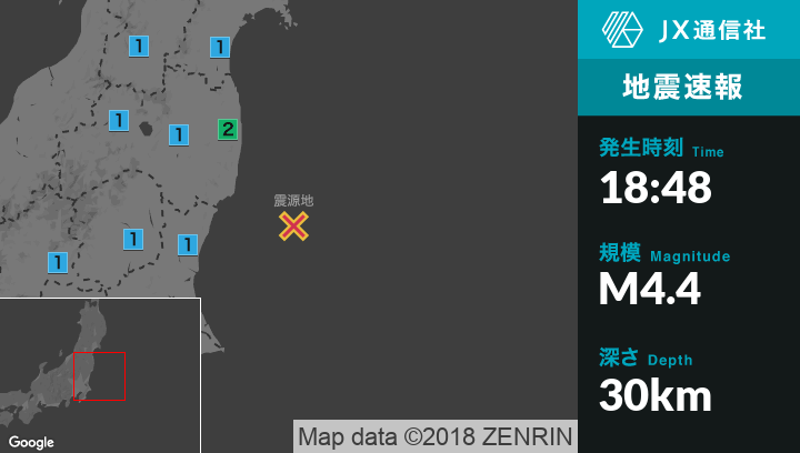 | 震度1 | いわき市, 相馬市, 南相馬市, 福島広野町, 楢葉町, 富岡町, 大熊町, 双葉町, 浪江町, 葛尾村, 飯舘村, 福島市, 郡山市, 白河市, 須賀川市, 二本松市, 田村市, 福島伊達市, 本宮市, 国見町, 川俣町, 大玉村, 天栄村, 泉崎村, 棚倉町, 玉川村, 浅川町, 小野町, 猪苗代町, 名取市, 岩沼市, 蔵王町, 山元町, 米沢市, 水戸市, 日立市, 高萩市, 笠間市, 東海村, 真岡市, 益子町, 渋川市 |