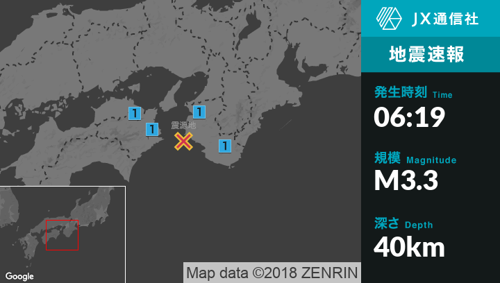 | 震度1 | 湯浅町, みなべ町, 田辺市, 徳島市, 小松島市, 石井町, 阿南市, 那賀町 |