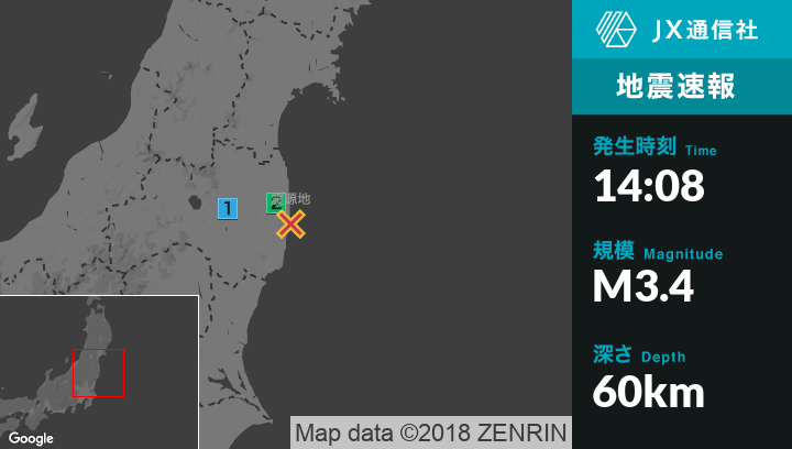 | 震度1 | いわき市, 福島広野町, 楢葉町, 川内村, 浪江町, 葛尾村, 田村市, 小野町 |