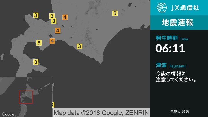 9月6日 6時11分頃発生した地震(最大震度4)