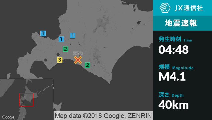 9月7日 4時48分頃発生した地震(最大震度3)
