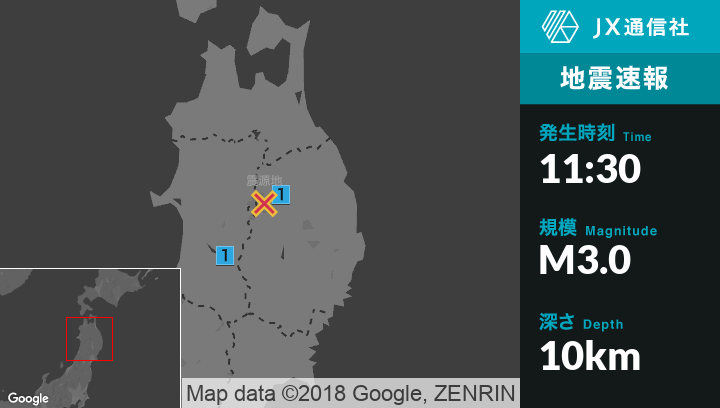 11月29日 11時30分頃発生した地震(最大震度1)