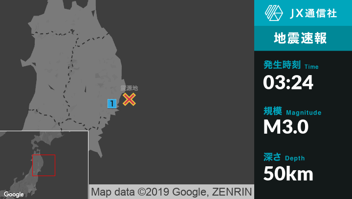 1月29日 3時24分頃発生した地震(最大震度1)