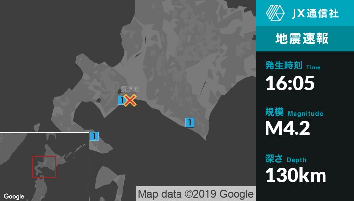4月19日 16時05分頃発生した地震(最大震度1)