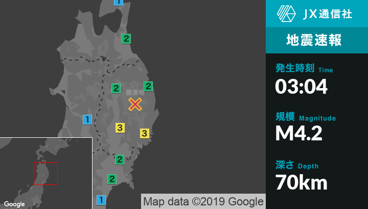 8月4日 3時04分頃発生した地震(最大震度3)