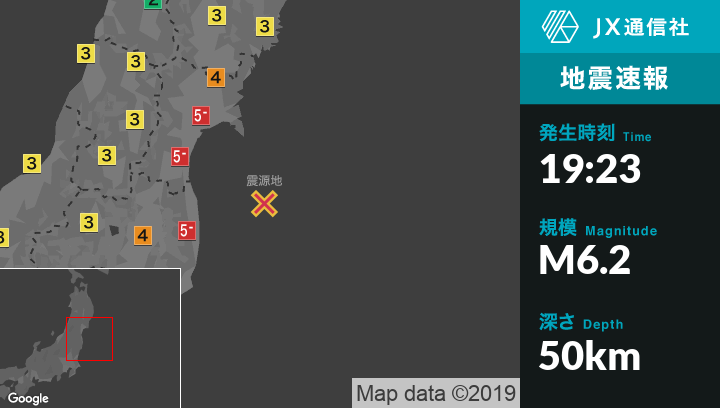 | 震度5弱 | - 宮城県