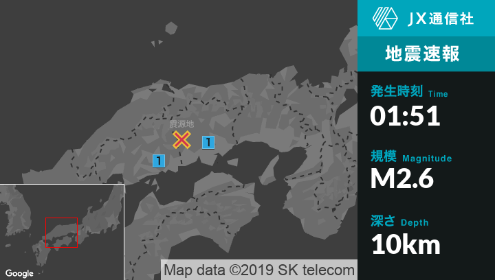 9月1日 1時51分頃発生した地震(最大震度1)